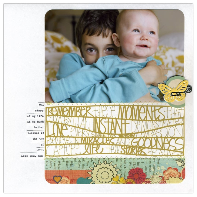 Today I am telling a little story about Anna at 11 months. This layout is a good example of combining a bunch of different techniques on one page: ...