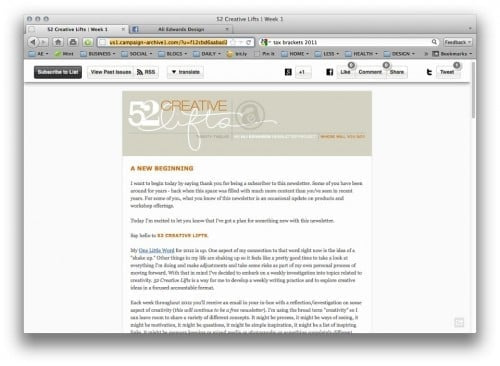 Just a quick note to let you know that I re-launched my weekly newsletter last week with a specific theme for the year: 52 Creative Lifts. If you a...