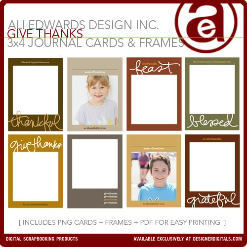 Three new products from me at Designer Digitals this weekend. First up is Give Thanks 3x4 Journal Cards These would be great to use a place setting...