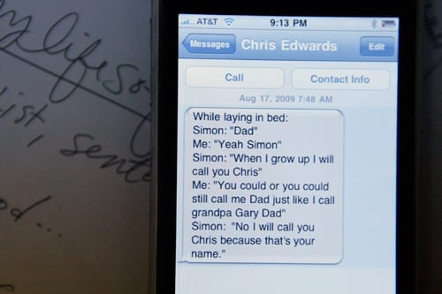 And a little later by email... Simon: "When I grow up tall like mom....When I grow up tall like Ali...I won't need the booster seat!" Chris: "Are y...