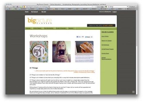 My new 4-week workshop, 31 Things , begins next Thursday at Big Picture Classes. Here's a few more details about this class for those of you that m...